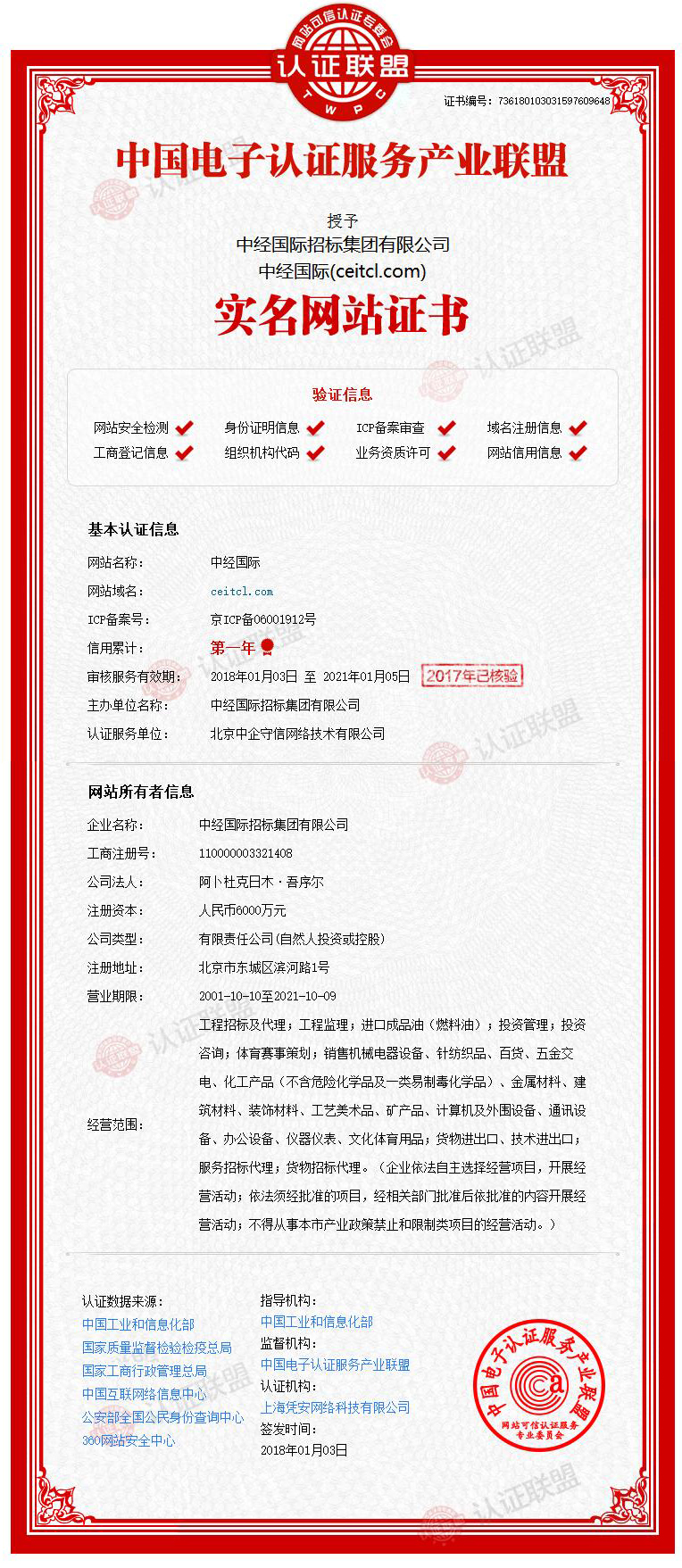 中国电子认证联盟实名网站认证
